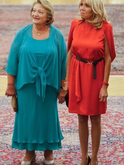 Με κατακόκκινο Luis Vuitton η σύζυγος του Γάλλου προέδρου - Πιο απλές Μπέτυ Μπαζιάνα και Μαρέβα Μητσοτάκη