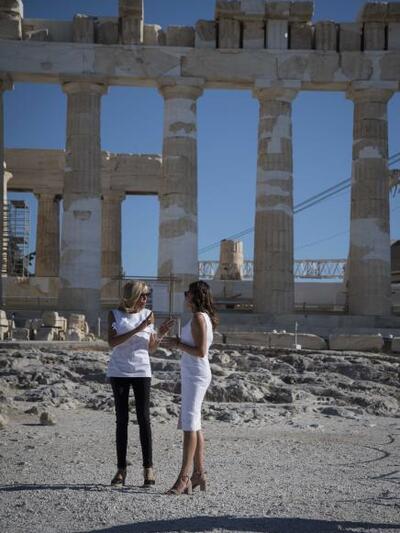 Από την μεσημεριανή επίσκεψη των δύο πρώτων κυριών στην Ακρόπολη.