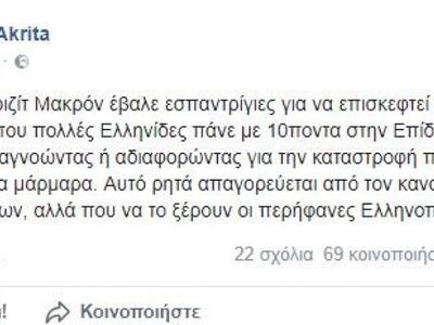 «Η Γαλλίδα Μπριζίτ Μακρόν έβαλε εσπαντρίγιες για να επισκεφτεί τα μνημεία μας. Την ώρα που πολλές Ελληνίδες πάνε με 10ποντα στην Επίδαυρο και στο Ηρώδειο – αγνοώντας ή αδιαφορώντας για την καταστροφή που προκαλείται στα μάρμαρα. Αυτό ρητά απαγορεύεται από τον κανονισμό των αρχαίων θεάτρων, αλλά που να το ξέρουν οι περήφανες Ελληνοπούλες.», έγραψε χαρακτηριστικά!