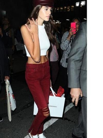 Παράλληλα ο φακός τη συνέλαβε σε προσωπικές της street style εμφανίσεις και σε παράλληλα promo events, όπου οι «κοιλιακοί», τα πόδια και το νεανικό της ντύσιμο ήταν σε πρώτο πλάνο. Η Κάια πόζαρε για πρώτη φορά ως παιδί για τον Versace αλλά την τελευταία διετία την είδαμε σε fashion εξώφυλλα, συνεντεύξεις και εκδηλώσεις με τη διάσημη μαμά της και όλη την οικογένειά της. Ο πιο πιστός της συνοδός είναι ο αδελφός της. Oπως θα παρατηρήσετε, το στυλ της είναι εντελώς natural πέρα από στυλιστικές υπερβολές και «στημένο» μακιγιάζ (τύπου Καρντάσιαν).