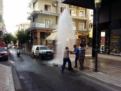 Αυτή την ώρα συνεργείο της ΔΕΥΑ Αγρινίου εργάζεται στο σημείο για την αποκατάσταση της βλάβης, ενώ δεκάδες Αγρινιώτες έχουν συγκεντρωθεί στο σημείο απολαμβάνοντας το θέαμα!