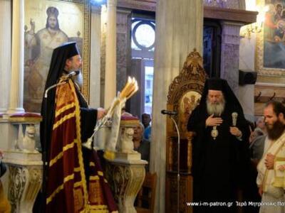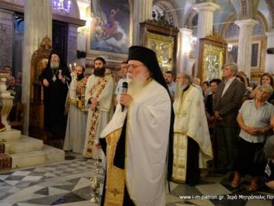 Τόσο στον πανηγυρικό εσπερινό της Πέμπτης όσο και ανήμερα της εορτής την Παρασκευή 8 Σεπτεμβρίου 2017 χοροστάτησε στις ιερές ακολουθίες ο σεβασμιότατος Μητροπολίτης Πατρών κ.κ. Χρυσόστομος, ο οποίος από το απόγευμα της Παρασκευής βρίσκεται στους Αγίους Τόπους, στα Ιεροσόλυμα με ομάδα ιερέων και λαικών από την Πάτρα, όπου και θα παραμείνει έως και την Τετάρτη 13/9.