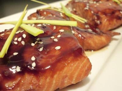 Σαλάτα κινόα με καπνιστό σολομό, άγριο σολομό με σπιτική σος Teriyiaki και ρύζι Basmati, μαύρα μακαρόνια από μελάνι σουπιάς με άγριο σολομό και σος σαμπάνιας με σαφράν.