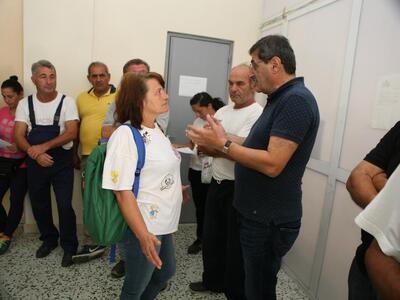 Κατά τη διάρκεια της επίσκεψης, ο Δήμαρχος και η Πρόεδρος του Δημοτικού Συμβουλίου, συνομίλησαν με τους εργαζόμενους, οι οποίοι μεταξύ άλλων ανέφεραν, ότι με το τέλος της οκτάμηνης απασχόλησής τους, είναι κυριολεκτικά ξεκρέμαστοι αφού δεν δικαιούνται με τις προϋποθέσεις που ισχύουν, όλοι επίδομα ανεργίας.