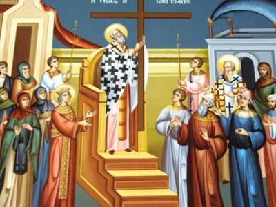 «Αδελφοί μου σήμερα, 14 Σεπτεμβρίου, η αγία Εκκλησία μας τιμά και δοξάζει τον Τίμιο Σταυρό. Σήμερα όλη την ημέρα οι πιστοί ψάλλουμε «τόν Σταυρόν σου Χριστέ προσκυνούμεν καί τήν ἁγίαν σου Ἀνάσταση ὑμνοῦμε καί δοξάζουμε». Σήμερα οι πιστοί αναφωνούμε ότι: «διά τοῦ Σταυροῦ ἦλθε χαρά ἐν ὅλω τῶ κόσμω».
