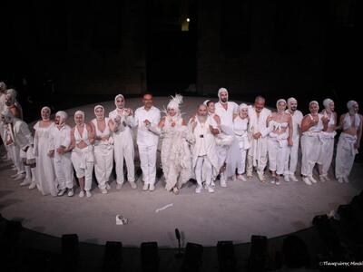 Τώρα που΄ ρθε η Ειρήνη, όλα αλλάζουν αδελφέ, στα καλά και στα ωραία θα΄ μαστε όλοι αγκαζέ… Το φινάλε της παράστασης στο Αρχαίο Ωδείο, μας βρήκε να σιγοτραγουδάμε τους παραπάνω στίχους που ακούγονται στην Ειρήνη του Αριστοφάνη, στην παραγωγή του Εθνικού Θεάτρου με σύνθεση που υπογράφει ο Νίκος Κυπουργός με την Ορχήστρα υπό τη Διεύθυνση του μαέστρου Νίκου Λαάρη, λιμπρέτο του Δημοσθένη Παπαμάρκου σε σκηνοθεσία από τον Κωνσταντίνο Αρβανιτάκη Με τον κόσμο να συρρέει από πολύ νωρίς και να γεμίζει τις θέσεις του Αρχαίου Ωδείου η πρεμιέρα του Φεστιβάλ Πάτρας Θεσμός Αρχαίου Δράματος ήταν κάτι περισσότερο από επιτυχημένη. Οι θεατές συχνά συμμετείχαν στην εξέλιξη της παράστασης χειροκροτώντας ένθερμα τους ηθοποιούς και φωνάζοντας ηχηρά μπράβο, ειδικά στα σημεία εκείνα που ο Τζίμης Πανούσης σχολίαζε την επικαιρότητα. Τις εντυπώσεις έκλεψαν η ιδέα του 3D Project Mapping από τον Στάθη Μήτσιο, που κάτι παρόμοιο δεν έχουμε ξαναδεί, η εκτέλεση της εξαιρετικής μουσική σύνθεσης του Νίκου Κυπουργού από τους καταπληκτικούς μουσικούς που διηύθηνε ζωντανά ο Νίκος Λαάρης, η εμφάνιση της Ειρήνης μέσα στους θεατές, η χορογραφία της Σεσίλ Μικρούτσικου, η σύγχρονη απόδοχη του κειμένου και φυσικά ο ανατρεπτικός Τζίμης Πανούσης που κινείτο άνετα με την υπέροχη φωνή του μεταξύ λιμπρέτου και προφορικού λόγου".