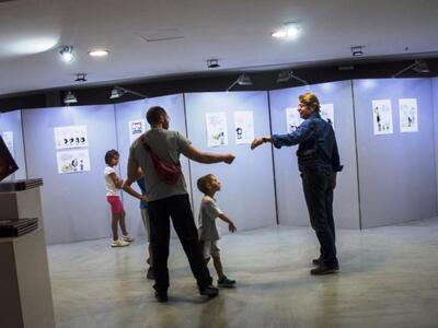 Στο πλαίσιο των εκδηλώσεων αυτών πραγματοποιήθηκε έκθεση της συλλογής των σκίτσων του γνωστού σκιτσογράφου Στάθη Σταυρόπουλου, με τίτλο «Τα αντιφασιστικά – Αντιρατσιστικά», των εκδόσεων ΚΨΜ, καθώς και πρωτοσέλιδων του παράνομου κατοχικού τύπου, η οποία «άνοιξε» την Παρασκευή 8 Σεπτεμβρίου και έκλεισε την Πέμπτη 15 Σεπτεμβρίου του 2017.