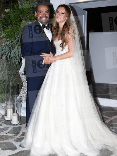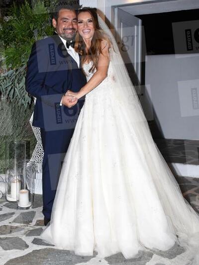 Η παρουσιάστρια του Alpha επέλεξε ένα νυφικό από τον οίκο Pronovias, ενώ την εμφάνιση της επιμελήθηκε ο φίλος της Βασίλης Μπουλούμπασης και το μακιγιάζ της η Ρούλα Σταματοπούλου.