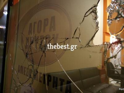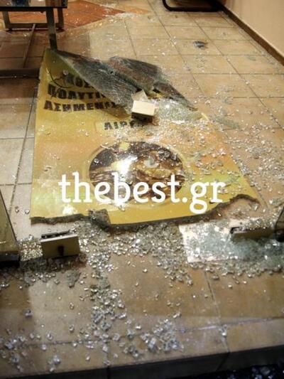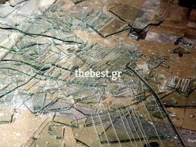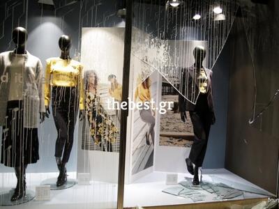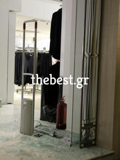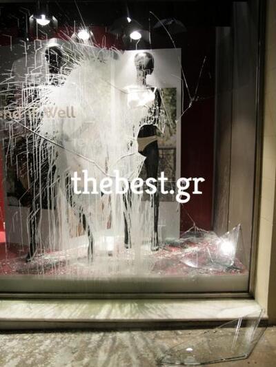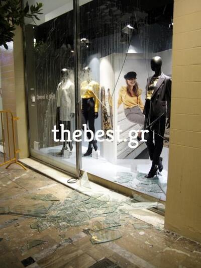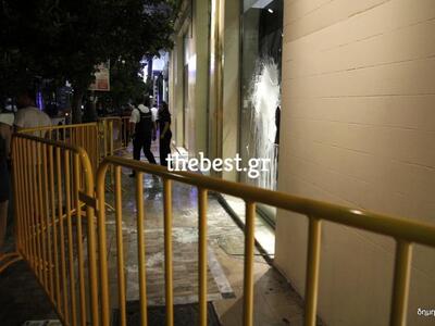 Στη συμβολή της οδού με την Αγίου Νικολάου ομάδα περίπου δέκα ατόμων, που έχει αποκοπεί από το σώμα της πορείας προκάλεσε ζημιές σε καταστήματα.