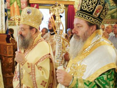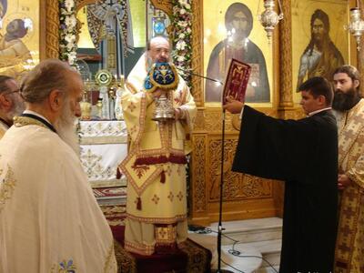 Μετά τήν Λιτανεία ὁ Σεβασμιώτατος συνεχάρη τό πλῆθος τῶν φιλεόρτων Χριστιανῶν καί εὐχήθηκε νά πορεύωνται στή ζωή μέ σοφία κατά Θεόν, μέ πίστη καί ἐλπίδα καί ἀγάπη, ὃπως ὑπαγορεύουν τά ὀνόματα τῶν ἑορταζομένων Ἁγίων.