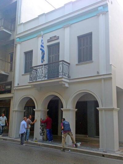 Κάποιος έγραψε σύνθημα στο σπίτι του Κωστή Παλαμά και γινόταν καθαρισμός.
