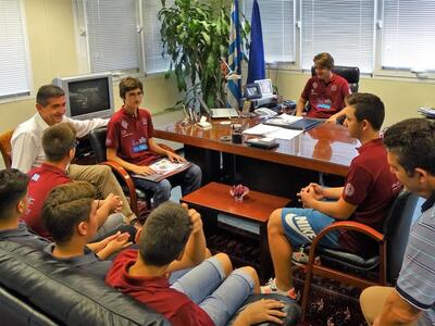 Το γραφείο του Αντιπεριφερειάρχη Αχαΐας Γρηγόρη Αλεξόπουλου γέμισε χθες από τους νεαρούς «μηχανικούς» του Αρσακείου Πατρών που θα συμμετάσχουν σε διαγωνισμό τεχνολογίας στη Μαλαισία. Τους μαθητές συνόδευε ο Διευθυντής του σχολείου Εμμανουήλ Πετράκης.