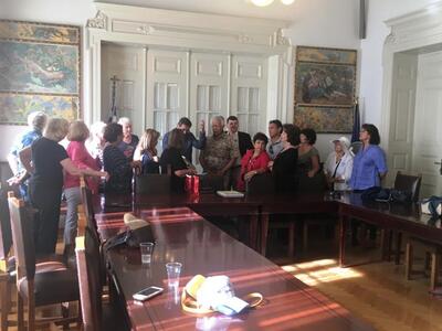 Τον Δήμαρχο Πατρέων, Κώστα Πελετίδη, επισκέφτηκε, σήμερα στο Δημαρχείο, αποστολή 15 αντιπροσώπων από την Επιτροπή Αδελφοποίησης Σάντα Μπάρμπαρα και Πάτρας, με επικέφαλής την Πρόεδρο της Επιτροπής Georgia Gastouniotis.
