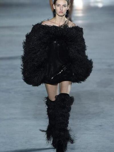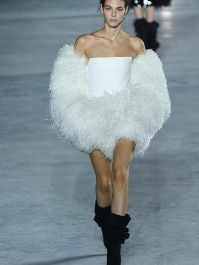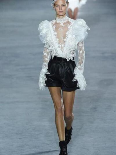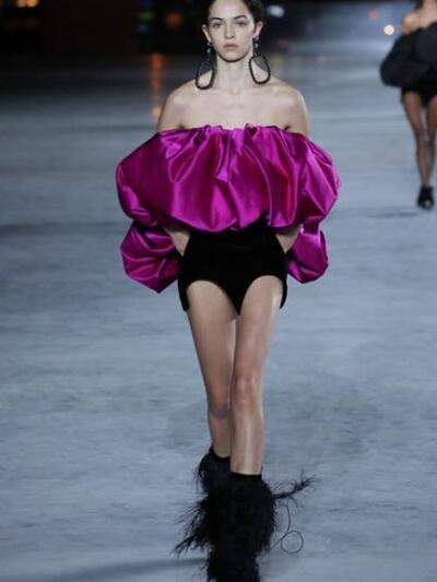 Στο Saint Laurent ο προβοκάτορας Anthony Vaccarello επιμένει στην πρόκληση και στις μοιραίες γυναίκες που δεν φοβούνται να «διαφημίσουν» το σώμα και τα κάλλη τους. Με φόντο τον φωταγωγημένο πύργο του Αιφελ το show διέθετε αποκλειστικά sexy θηλυκά, έτοιμα για εκρηκτικές νύχτες και διαρκές clubbing. Υπερβολικά μίνι και καυτά βραδινά σορτσάκια, μπότες με φτερά, «μπαλούν» τοπ και φούστες αλλά και μπλούζες σαν θεαματικές φτερωτές ομπρέλες. Τα πόδια πάντα σε κοινή θέα. Μιλάμε για δημιουργίες κατάλληλες για άψογες, νεανικές σιλουέτες (που βέβαια πέτυχαν μοναδικές εικόνες από αυτές που χαίρεσαι να θαυμάζεις με το στόμα ανοιχτό). Στην πρώτη σειρά καθόταν η Κέιτ Μος που λατρεύει το sexy-rock ύφος Saint Laurent καθώς και οι Κατρίν Ντενέβ, Λένι Κράβιτζ, Κλοέ Σεβινί, Αμπερ Βαλέτα κ.α