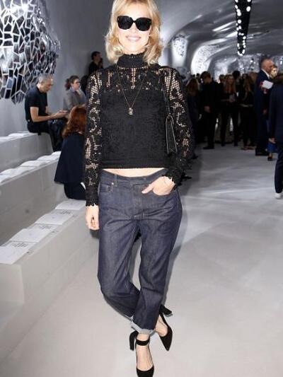 Την κολεξιόν Dior παρακολούθησαν μεταξύ άλλων οι ηθοποιοί Ναόμι Γουοτς, Εμιλι Ραταζκόβσκι, η βετεράνος supermodel Εύα Ερτζιγκόβα και τα style icons Ολίβια Παλέρμο, Αλέξα Τσανγκ, Κιάρα Φεράνι, Κάρλι Κλος. Πιο εντυπωσιακή παρουσία front row η ρωσίδα καλλονή Νατάλια Βοντιάνοβα τυλιγμένη σε κανελί Dior φτερά και με συνοδό τον κροίσο σύζυγό της.