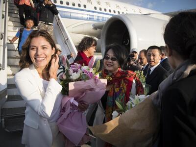 Η κ. Μπαζιάνα επέστρεψε στην Αθήνα, στην πρώτη απευθείας πτήση Αθήνας -Πεκίνου, πτήση στην οποία είναι το τιμώμενο πρόσωπο.