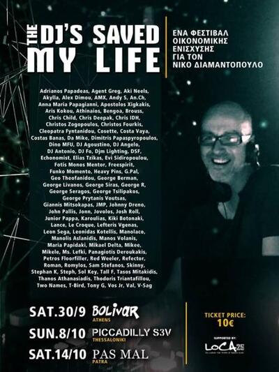 Οι DJs συμμετέχουν αφιλοκερδώς και όλα τα έσοδα από τα εισιτήρια θα διατεθούν για τη θεραπεία του Νίκου.