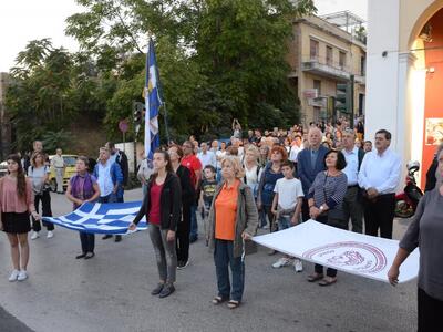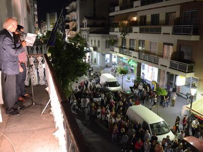 Ο περίπατος κατέληξε στην πλατεία Γεωργίου της Πάτρας, όπου μίλησε ο δήμαρχος Κώστας Πελετίδης.