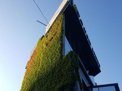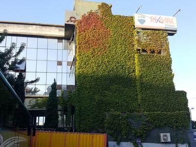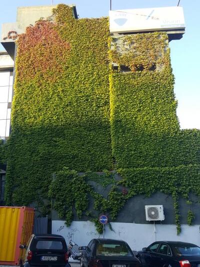 Το εντυπωσιακό αναρριχούμενο φυτό έχει ντύσει όλη την πρόσοψη του κτιρίου και είναι ορατό από την πλευρά του υπεραστικού ΚΤΕΛ και επίσης από την Οθωνος Αμαλίας.