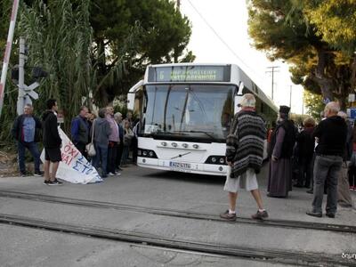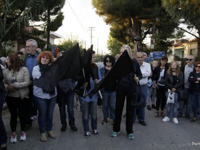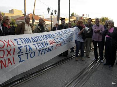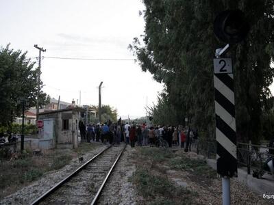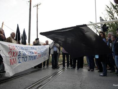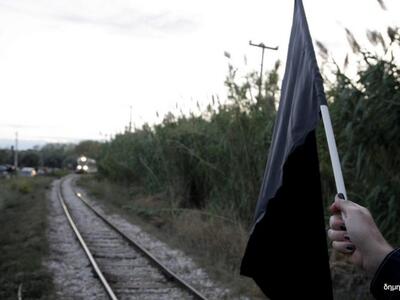Την στιγμή που πλησίαζαν τα βαγόνια του Προαστιακού στο σημείο, οι συγκεντρωμένοι κάτοικοι που όσο περνούσε η ώρα, πλήθαιναν, κούνησαν τις μαύρες σημαίες που κρατούσαν.