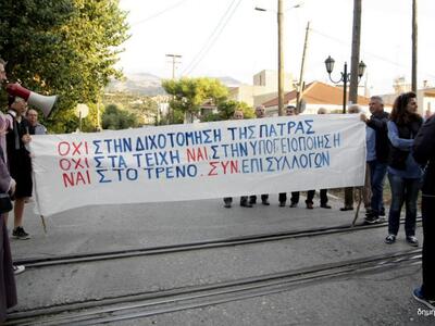 Περισσότερα από εκατό άτομα συγκεντρώθηκαν στο ύψος της γραμμής απ’ όπου περνάει ο προαστιακός σιδηρόδρομος στην οδό Διγενή Ακρίτα, στο Προάστιο Πατρών διαμαρτυρόμενοι για το θέμα της επικείμενης επίγειας διέλευσης της νέας σιδηροδρομικής γραμμής από το Ρίον έως και την οδό Κανελλοπούλου.