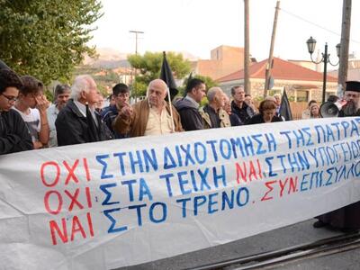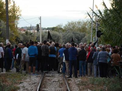 Δυναμική κινητοποίηση πραγματοποιήθηκε χθες από τους κατοίκους του Προάστιου και του Καστελλόκαμπου Πατρών για το θέμα της επικείμενης επίγειας διέλευσης της νέας σιδηροδρομικής γραμμής από το Ρίο έως και την οδό Κανελλοπούλου. Στη συγκέντρωση και συμβολική διαμαρτυρία με μαύρες σημαίες παρέστησαν μεταξύ άλλων η πρόεδρος του Δημοτικού συμβουλίου Κατερίνα Γεροπαναγιώτη, ο Ανδρέας Αντωνόπουλος, αρμόδιος για θέματα Τύπου, ο πρόεδρος της Κοινωφελούς Επιχείρησης καρναβάλι Πάτρας, Νίκος Χρυσοβιτσάνος και ο αντιδήμαρχος Παύλος Στάμος.