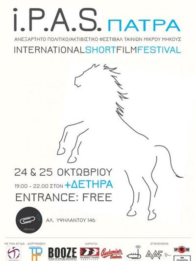 Το i.P.A.S. Film Festival ύστερα από την επιτυχημένη του πρώτη παρουσίαση στο Booze Cooperativa, συνεχίζει να ταξιδεύει και καταφθάνει στην Πάτρα, στον υπέροχο πολυχώρο του Συνδετήρα, οπού θα φιλοξενηθεί για ένα διήμερο προβολών, στις 24 και 25 Οκτώβρη του 2017 από τις 19.00 έως τις 22.00.