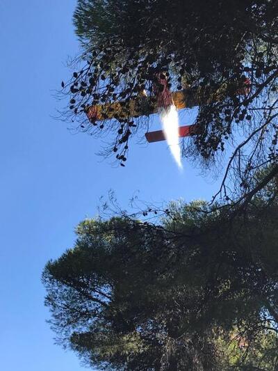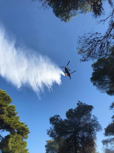 Η πυρόσβεση γίνεται με ρίψεις νερού και από αέρα. Το έργο των πυροσβεστών συνέδραμαν τρία καναντέρ και ένα ελικόπτερο.