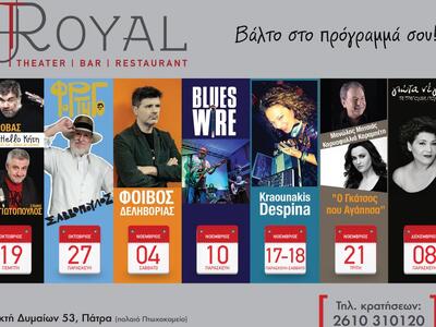 Επτά διαφορετικές παραγωγές, οχτώ βραδιές πολιτισμού, μουσικής και εξαιρετικής ποιότητας ήδη προγραμματίστηκαν και σας προσκαλούν στον πολυχώρο του Royal Theater στην Ακτή Δυμαίων!