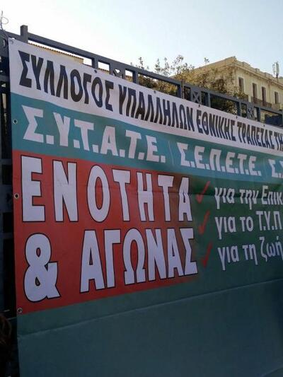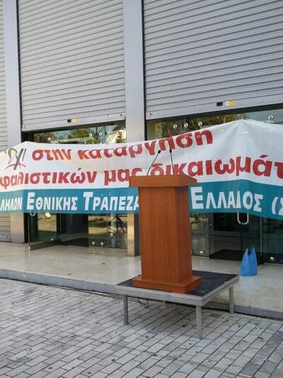 Αρκετός κόσμος είναι μαζεμένος από τις 10 περίπου το πρωί μπροστά από το κεντρικό κατάστημα της Εθνικής, συμμετέχοντας στην απεργία και την συγκέντρωση υπαλλήλων και συνταξιούχων της Τράπεζας.
