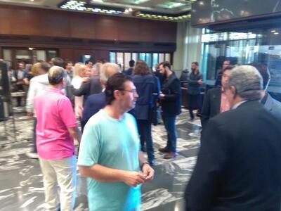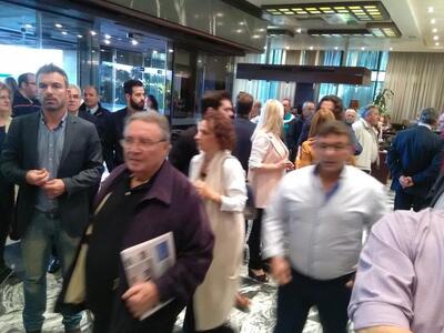 Στην αίθουσα στο βρίσκεται πλήθος βουλευτών και πολιτικών στελεχών του κόμματος της ευρύτερης περιοχής.