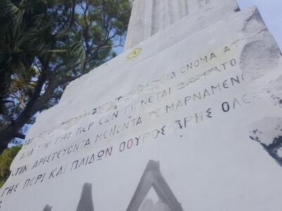 Κάποιοι απλά επιμένουν. Τα συνεργεία του δήμου Πατρέων σβήνουν, εκείνοι γράφουν. Συνθήματα με μπογιά και σπρέυ σε κάθε σημείο του ιστορικού μνημείου. Αυτή τη φορά κρέμασαν μια σαμπρέλα στο κεφάλι του αγάλματος και έγραψαν συνθήματα στο μνημείο του Αγνωστου Στρατιώτη στην πλατεία Εθνική Αντιστάσεως.