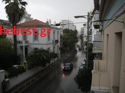 Στο βίντεο από την οδό Νόρμαν βλέπεται την ποσότητα νερού που κατεβάζουν τα λούκια.