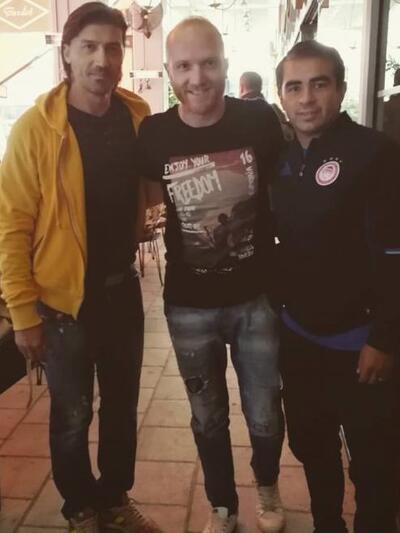 Μια ευχαριστη εκπληξη περιμενε τους θαμωνες του αγαπημενου wine bar της ρηγας φεραιου βλεποντας να απολαμβανουν τον καφε τους ο αμανατιδης,ο ιμπαγασα,και πολλοι αλλοι παλαιμαχοι θρυλοι του ΟΛΥΜΠΙΑΚΟΥ που αρκετα ευδιαθετοι φωτογραφηθηκαν με φαν τους και οχι μονο και φυσικα με τον executive chef του bodegas σταθη κοκκαλη που δηλωνει "αρρωστος" ολυμπιακος.