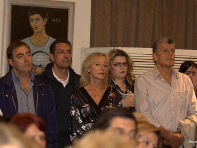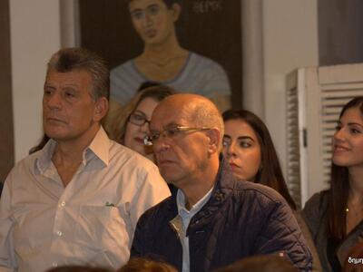 Ο Παναγιώτης Θεοδωρακόπουλος "άνοιξε" με τον δικό του ξεχωριστό τρόόπο τη βραδιά, καλωσορίζοντας το πολυπληθές κοινό. Έδωσε εν συντομία το στίγμα της γραφής του Μάκη Σέργιου ενώ αναφέρθηκε και στη γνωριμία τους.