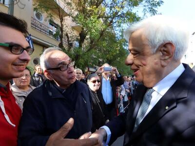 Διακριτικά και ενώ τα τηλεοπτικά συνεργεία είχαν στραμμένη την προσοχή τους στις δηλώσεις των πολιτικών ο Πρόεδρος της Δημοκρατίας πλησίασε τους συγκεντρωμένους και άρχισε να τους χαιρετά, οι οποίοι μετά τον αρχικό αιφνιδιασμό αντέδρασαν με ενθουσιασμό, αφού είχαν την ευκαιρία να σφίξουν το χέρι του κ. Παυλόπουλου και να του πουν λίγες κουβέντες.