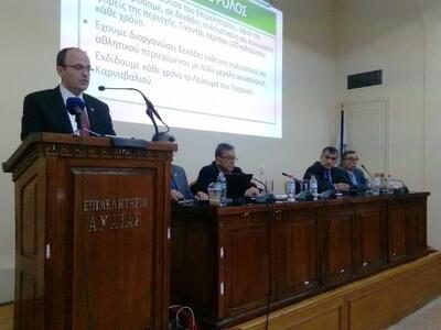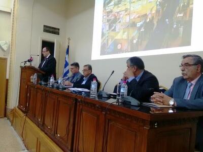 Μετά την εισαγωγική ομιλία του προέδρου του Επιμελητηρίου Πλάτωνα Μαρλαφέκα ακολούθησε μαγνητοσκοπημένο μήνυμα από τον Περιφερειάρχη Απόστολο Κατσιφάρα.
