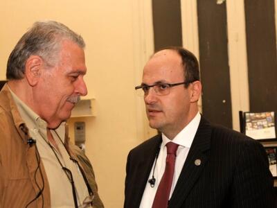 Ο Παναγιώτης Χελάς πήρε το λόγο και αναφέρθηκε στις διεθνείς σχέσεις του Επιμελητηρίου και μετά προβλήθηκε μήνυμα από τον δήμαρχο Ερυμάνθου Θάνο Καρπή.