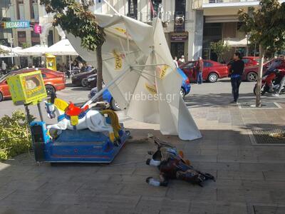 ΙΧ αυτοκίνητο ανέβηκε στην πλατεία Γεωργίου - στο απόλυτο κέντρο της Πάτρας - και παρέσυρε ότι έβρισκε στο πέρασμά του. Ο οδηγός του δεν αντελήφθη καν την πλατεία, ή πήρε αργά τη στροφή με αποτέλεσμα να ανέβει πάνω και να προσκρούσει σε δέντρο, να παρασύρει ένα παιδικό μηχάνημα με αλογάκι και να περάσει ξυστά από περίπτερο στο κάτω μέρος της πλατείας.