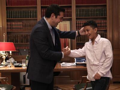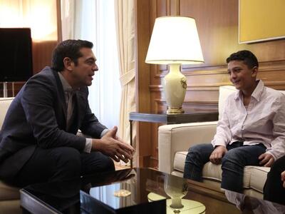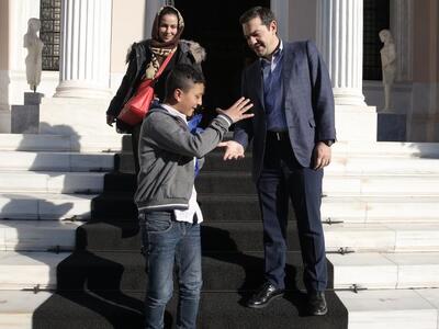 Σε μια άκρως συμβολική κίνηση ο Αλέξης Τσίπρας συναντήθηκε με τον μικρό Αμίρ και τη μητέρα του και του έδωσε ως δώρο την ελληνική σημαία που κάποιοι του στέρησαν την τιμή να κρατήσει.