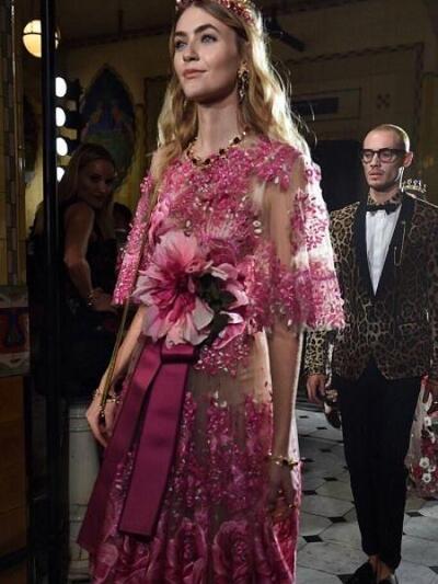 Στο σόου τους πέρα από μοντέλα, εμφανίστηκαν 100 «millenials» δηλαδή επώμνυμα, νέα παιδιά με επιρροή στο διαδίκτυο. Παρέλασαν με τα πιο χαρακτηριστικά ρούχα και αξεσουάρ Dolce e Gabbana (τιάρες, λουλούδια, εμπριμέ, λεοπάρ, κεντήματα κ.α.) δημιουργώντας ένα κλίμα μαξιμαλιστικής Εδέμ. Διασημότητες της βρετανικής πρωτεύουσας όπως οι Lady Kitty Spencer, Lady Tatiana Mountbatten, Lady Alice Manners, Tom Brady, Pixie Lott, Lottie Moss ήταν ανάμεσά τους.