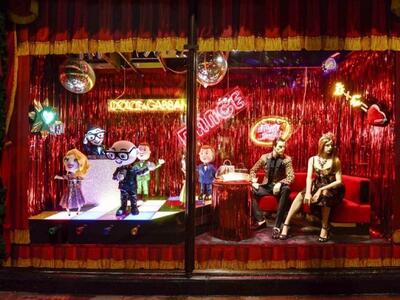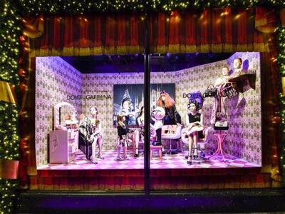 Παραμυθένιο αξιοθέατο του πολυαγαπημένου Λονδίνου Χριστουγέννα είναι σίγουρα οι βιτρίνες –υπερπαραγωγές ονομαστών πολυκαταστημάτων, με «ναυαρχίδα» το αριστοκρατικό Harrods στο Knightsbridge. Φέτος, όχι μία, ούτε δυο, αλλά …. 14 βιτρίνες ολόγυρα του επιβλητικού κτιρίου διακοσμήθηκαν αποκλειστικά από τους ιταλούς μόδιστρους Dolce e Gabbana, οι οποίοι επιπλέον παρουσιάζουν απίστευτα αξεσουάρ, ρούχα και δώρα στο ισόγειο και τον τέταρτο όροφο. Η εισβολή του ήλιου της Μεσογείου στο λονδρέζικο «ναό» της κατανάλωσης σηματοδοτήθηκε μάλιστα με μεγάλη επίδειξη μόδας στα food halls του Harrods με guest star την Κάιλι Μινόγκ.