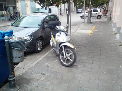 Το… κακό παράδειγμα δίνει ο υπάλληλος ή οι υπάλληλοι που έχουν «χρεωθεί» το δίκυκλο με αριθμό 188 του Δήμου Πατρέων. Ό,τι ώρα και να περάσεις έξω από τις δημοτικές υπηρεσίες της Μαιζώνος (απέναντι από το δημαρχείο), το μηχανάκι είναι σταθμευμένο πάνω στο πεζοδρόμιο!