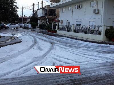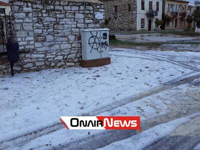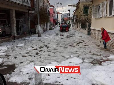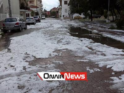 Ισχυρή χαλαζόπτωση σημειώθηκε χθες στο Μεσολόγγι. Από την σφοδρή χαλαζόπτωση καλύφθηκε ολόκληρο το οδόστρωμα από τους κρυστάλλους με αποτέλεσμα να έχουν πλημμυρίσει δρόμοι αλλά και σπίτια.