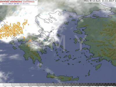 Σε εξέλιξη βρίσκονται αυτή την ώρα έντονα καιρικά φαινόμενα στα βορειοδυτικά της χώρας, κυρίως στην Κέρκυρα και στην Ήπειρο. Χαρακτηριστική είναι η φωτογραφία της Εθνικής Μετεωρολογικής Υπηρεσίας με τους κεραυνούς που έχουν σημειωθεί μέχρι τις 8 το βράδυ του Σαββάτου στην περιοχή.