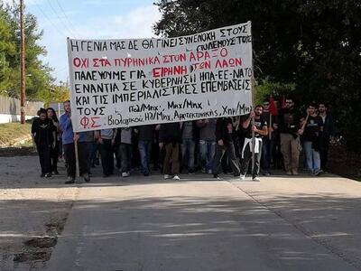 «Πολύ δυναμική η κινητοποίηση και πορεία που πραγματοποίησαν φοιτητικοί σύλλογοι, φορείς, συλλογικότητες και οργανώσεις στη στρατιωτική βάση του Άραξου, με τη συμμετοχή και στήριξη και της ΑΝΤΑΡΣΥΑ. Η πορεία ξεκίνησε από το χωριό της Λακκόπετρας και έφτασε μέχρι και τη βάση, όπου μπλόκαραν την είσοδο δρακόντειες δυνάμεις από ΜΑΤ και Ασφάλεια. Φυσικά, κανείς δεν τρομοκρατήθηκε, αλλά αντιθέτως, ακούστηκαν εκκωφαντικά οι απαιτήσεις των εκατοντάδων αγωνιστών που συμμετείχαν από πολλούς διαφορετικούς χώρους. Έγινε καθαρό πως δε θα γίνει ανεκτή η οποιαδήποτε σκέψη για μεταφορά και αποθήκευση πυρηνικών στη βάση του Άραξου αλλά ούτε και πουθενά. Τα πολεμοκάπηλα σχέδια της κυβέρνησης, η χυδαία και εξαιρετικά επικίνδυνη για το λαό, πρόσδεση της χώρας στα ιμπεριαλιστικά σχέδια και τις πολεμικές προετοιμασίες του άξονα ΗΠΑ-ΕΕ-ΝΑΤΟ θα αποτύχουν και αυτό θα το διασφαλίσει ο ίδιος ο κόσμος της εργασίας, ο λαός και η νεολαία. Ας το βάλει αυτό καλά η κυβέρνηση στο μυαλό της. Ας έχει κατά νου πως η σημερινή κινητοποίηση ήταν μόνο η αρχή, μια πρώτη προειδοποίηση. Η συνέχεια θα είναι ακόμα πιο δυναμική!