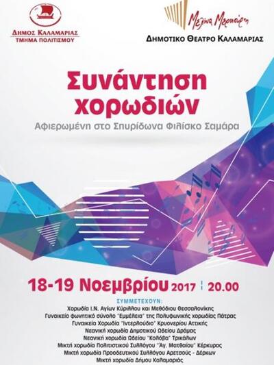 Στη Συνάντηση χορωδιών της Καλαμαριάς, θα λάβουν ακόμα μέρος οι χορωδίες: Ι.Ν. Κυρίλλου και Μεθοδίου Θεσσαλονίκης, η Γυναικεία Χορωδία ‘’Ιντερλούδιο’’ Κρυονερίου Αττικής, η Νεανική Χορωδία Δημοτικού Ωδείου Δράμας, η Νεανική Χορωδία Ωδείου ‘’Κολόβα’’ Τρικάλων, η Μικτή Χορωδία Πολιτιστικού Συλλόγου Αγίου Ματθαίου Κέρκυρας, η Μικτή Χορωδία Προοδευτικού Συλλόγου Αρετσούς- Δέρκων και η Μικτή Χορωδία Δήμου Καλαμαριάς.