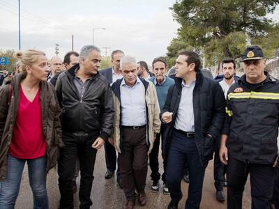 Στη Μάνδρα μετέβη νωρίτερα ο πρωθυπουργός Αλέξης Τσίπρας επικεφαλής κυβερνητικού κλιμακίου και παραγόντων της τοπικής αυτοδιοίκησης και της Πυροσβεστικής Υπηρεσίας. Στην περιοχή της παλαιάς εθνικής οδού Αθηνών-Θηβών, ο κ. Τσίπρας ενημερώθηκε από τον αντιπεριφερειάρχη δυτικής Αττικής Ι. Βασιλείου για την πορεία αντιμετώπισης των συνεπειών από τις χθεσινές φονικές πλημμύρες.