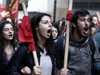 Μόλις έφτασαν έξω από την αμερικανική πρεσβεία έψαλαν τον εθνικό ύμνο, ύψωσαν τα χέρια τους πάνω από τη σημαία, τη δίπλωσαν και διαλύθηκαν. Ωστόσο, ο δρόμος μπροστά από την πρεσβεία παραμένει κλειστός, καθώς αναμένεται να καταφθάσει εκεί η μεγάλη πορεία για την επέτειο του Πολυτεχνείου.