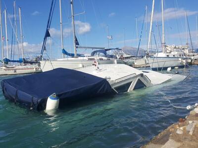 Βυθίστηκε τελικά το σκάφος που είχε πλημμυρίσει από νερά μετά το πέρασμα του "Ζήνωνα" στη Μαρίνα της Πάτρας. Το σκάφος είχε προφανώς υποστεί ζημιά στην καρίνα του και έμπαζε νερά.